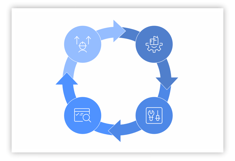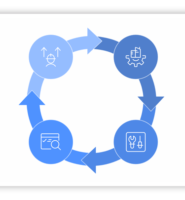Aplicamos o conceito de melhoria contínua por meio do ciclo PDCA, buscando constantemente evolução técnica e operacional.